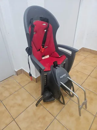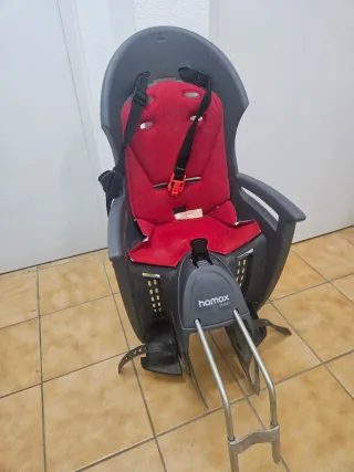 Asiento para bicicleta marca Hamax, modelo Smiley. Ideal para transportar a los más pequeños de forma segura. - Color rojo y negro. - Arnés de seguridad. - Soporte metálico para montaje.