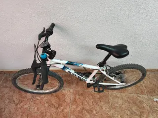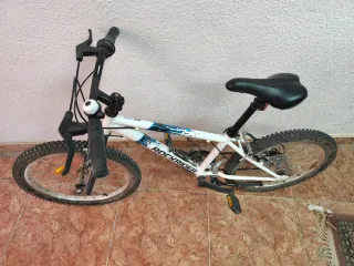 Bicicleta infantil de la marca Decathlon, modelo Rockrider. Ideal para iniciarse en el ciclismo. - Cuadro de aluminio ligero. - Ruedas de 24 pulgadas. - Frenos V-brake. - Sillín ajustable en altura.