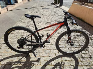 Cambio Bicicleta de montaña Stevens Sonora como nueva en color negro y rojo talla M por bicicleta de gravel o carretera en mismo estado. - Cuadro de aluminio. - Ruedas Maxxis. - Frenos de disco. - Suspensión delantera.