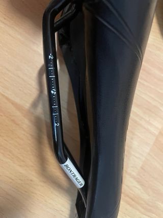 Sillín de bicicleta Bontrager en color negro.Tiene una separación de las placas de cuero como se puede apreciar en la foto,pero que no afecta a su funcionamiento - Diseño ergonómico. - Cubierta de cuero sintético. - Raíles de acero.