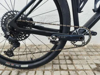 Bicicleta MTB 29 talla 19 / L Cuadro carbono, tija y sillín carbono. Manillar y potencia aluminio. Ruedas mavic. Trasera reparada pero funciona correctamente. Cambio Shimano deore 12v con casette 10-52 y cadena sram GX eagle 12v. Cubiertas Maxxis con liquido tubeless. Frenos disco ZTTO nuevos. Horquilla Fox 32 SC performance 100mm con bloqueo en manillar. Bielas Shimano SLX con marcas de uso y plato 34 nuevo. Cambios, cuadro, tija, sillín y frenos nuevo. Está en Benicasim. Preguntar para más información.