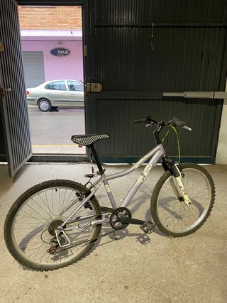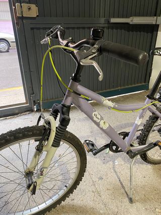 Bicicleta de montaña en color lila, ideal para jóvenes ciclistas. - Cuadro de aluminio. - Suspensión delantera. - Frenos V-brake. - Ruedas de 24 pulgadas. Está practicamente nueva es que no tiene mucho uso, el timbre no va.