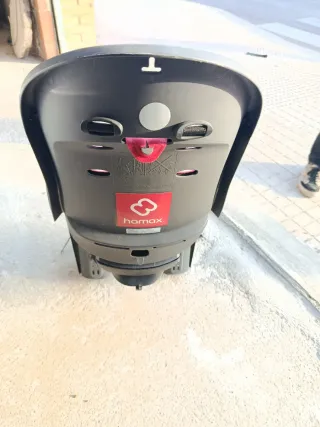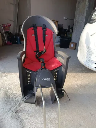 Sillita de seguridad para bicicleta marca Hamax, modelo Smiley. Diseñada para el transporte de niños. - Color rojo y gris. - Arnés de seguridad de 3 puntos. - Reposapiés ajustables.