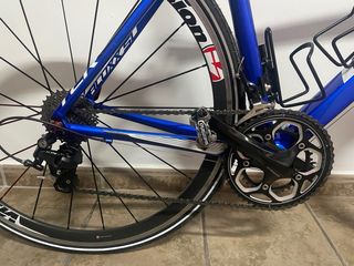 Bicicleta de carretera Giant TCR de aluminio en color azul. -Talla M - Cuadro de aluminio. -Horquilla de carbono -Tija de carbono - Ruedas Vision de carbono con cubiertas nuevas Vittoria Randoneur 700x28c -Grupo Shimano 105 2x11 Se vende con pedales de carretera LOOK Se acepta cambio por bici de gravel