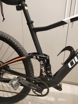 Vendo Bulls Wild Ronin de carbono, bicicleta de montaña de doble suspensión, muy cuidada y funcionando perfectamente. Cuadro de carbono Doble suspensión Tija telescópica Ruedas 29” Bicicleta ligera, rígida y muy reactiva Ideal para trail / all-mountain Mecánicamente perfecta, lista para rodar Siempre bien mantenida Tiene una marca superficial en el tubo superior (solo estética, roce de pintura, no estructural). Se aprecia en las fotos. No afecta en nada al funcionamiento ni a la seguridad. Cambios y frenos en buen estado Suspensiones funcionando suaves, mantenimiento recién hecha, y cubiertas nuevas. Tiene algún rasguño en el cuadro