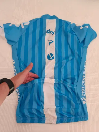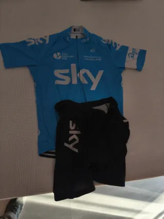 Conjunto de ciclismo con maillot azul y culotte negro. - Maillot de manga corta con logo Sky. - Culotte negro con logo Sky. - Talla L