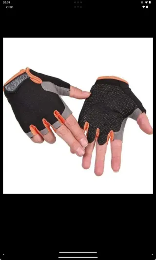 Guantes de ciclismo de medio dedo en talla L. Para bicicleta, sin estrenar. - Diseño con palma antideslizante. - Acolchado en la palma. - Cierre de velcro ajustable. - Material transpirable.