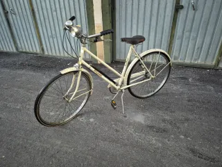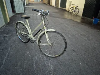 Bicicleta holandesa vintage, ideal para escaparatismo y publidad...necesita restaurar ligeramente - Cuadro de color crema. - Ruedas de radios. - Guardabarros delantero y trasero. - Sillín de cuero. - Faro delantero.