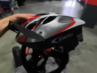 Casco de bicicleta con diseño deportivo y moderno. Cuenta con detalles en rojo y plateado. - Marca: GPS - Colores: Negro, rojo y plateado.