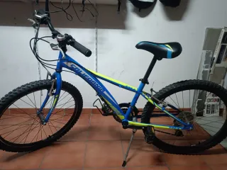 Bicicleta de montaña con ruedas de 26 pulgadas. - Cuadro de color amarillo y azul. - Sillín negro. - Portabidón incluido.