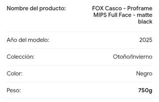 Casco FOX Proframe MIPS Full Face en color negro mate. - Modelo: 2025 - Colección: Otoño/Invierno - Peso: 750g TALLA M,SIN USAR,ERROR EN LA TALLA,NO PUEDO CAMBIARLO,NO HAGO ENVÍOS