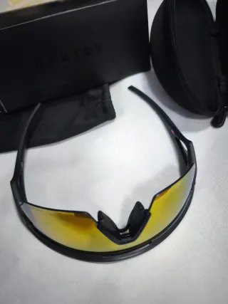 Gafas de ciclismo Oakley con lentes amarillas. - Incluye funda rígida y bolsa protectora. - Diseño deportivo y moderno. - Marca: Oakley.