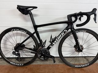 Bicicleta de carretera Specialized Tarmac SL7 S-Works. - Cuadro de carbono. - Frenos de disco Durace - Ruedas Roval CXL 2 - Transmisión Shimano Dura-Ace V11 - Con pontenciometro dual. - Sillin 3D - Porta roldanas Ceramic Speed - Romientos pedalier Ceramic Speed. - Cubiertas Swoks - portabidones carbono Sworks