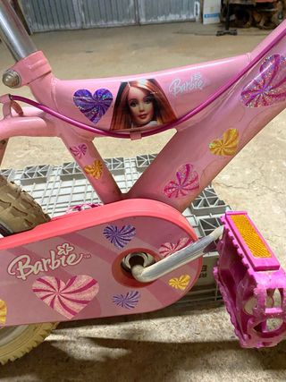 Bicicleta infantil de la marca Barbie, ideal para las pequeñas/os de la casa. Su diseño en color rosa y los detalles de corazones la hacen muy atractiva a la vez que cómoda - Marco de color rosa. - Decoración con pegatinas de corazones. - Incluye imagen de Barbie en el marco.