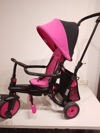 Triciclo evolutivo Smart Trike en color rosa. Se adapta al crecimiento del niño (10 meses a 3 años). - Diseño moderno y funcional. - Capota para protección solar. - Barra de empuje para padres. - Reposapiés. - Cinturón de seguridad.