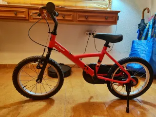 Bicicleta infantil de 16 pulgadas en color rojo. - Marca Btwin. - Ruedines no incluidos. - Ideal para iniciarse en el ciclismo. - Faltan los pedales - Precio negociable