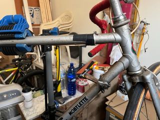 Bicicleta GAC Movilette clásica. - Cuadro plateado. - Manillar rojo. - Sillín azul.Bicicleta de carretera GAC. - Cuadro plateado. - Manillar rojo. - Ruedas con llantas de aluminio. para ver en Benifaio