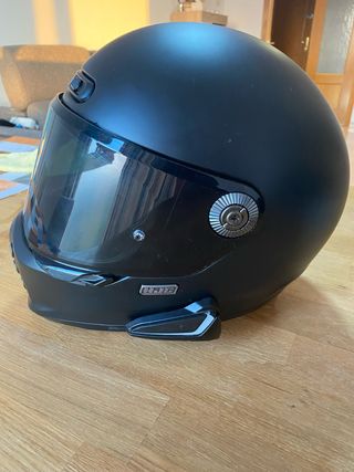Casco HJC V10 en acabado mate, incluye intercomunicador SMART HJC 20. - Casco integral HJC V10. - Color negro mate. - Intercomunicador SMART HJC 20 integrado. -Factura 6 del 24 -visor claro Funda -Sin caja .