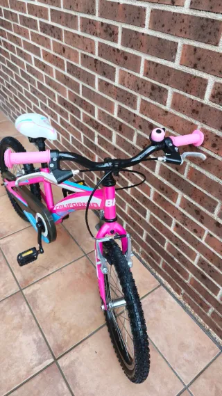 Bicicleta infantil BH California de 18 pulgadas. Para niña color rosa y con ruedas de 18". En buen estado. Tiene el sillín un roto a cada lado como se ve en las fotos.