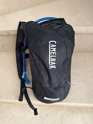 Mochila Camelbak en color negro con diseño hexagonal. - Compartimento principal. - Tirantes ajustables. - Tubo de hidratación azul. - 1 litro