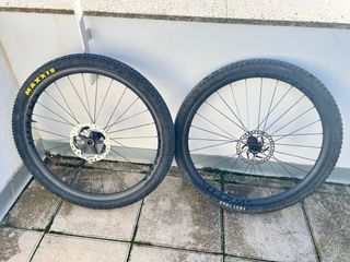Juego Ruedas Industry Nine. Bujes industry nine hydra. La rueda delantera 29” está sin montar, el aro es de aluminio. DH GRADE 300, es nuevo a estrenar y el buje, al igual que el trasero, está con los rodamientos muy nuevos. El aro de la rueda trasera 27.5” es de carbono y tiene algo de uso además de algunas rascadas. El núcleo es hg. Ambas son de 32 radios Medidas buje trasero 12x157 Medidas buje delantero 20x110