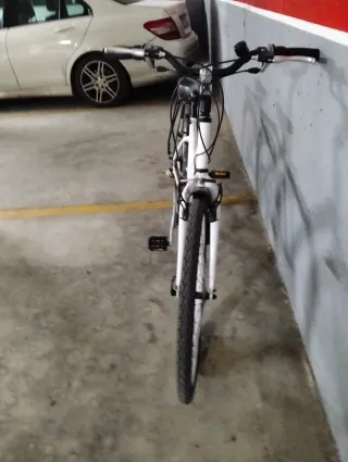 Bicicleta Gotti ST 3000 en color blanco con detalles en rojo y negro. Ideal para paseos y rutas. - Cuadro de aluminio. - Suspensión delantera Zoom. - Frenos de disco. - Ruedas de 26 pulgadas. - Incluye portabidón. Las ruedas estan pinchadas o sin aire