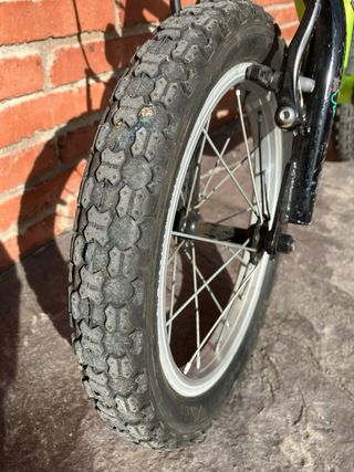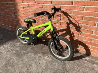 Bicicleta infantil de la marca Conor, modelo Ray, con ruedas de 14 pulgadas. Bicicleta muy robusta y duradera. Apta para niños de 2 a 5 años. Funciona perfectamente y las ruedas aún están bien. Tiene algunos arañazos superficiales del uso normal de un niño. - Color verde lima. - Cadena protegida. - Ruedecitas aprendizaje (están nuevas, nunca usadas)