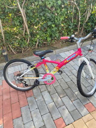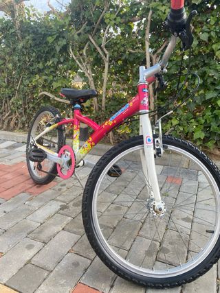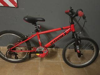 Bicicleta infantil de color rojo, ideal para los más pequeños. - Marca Btwin. - Ruedas de 20 pulgadas. - Frenos delanteros y traseros. - Sillín ajustable.