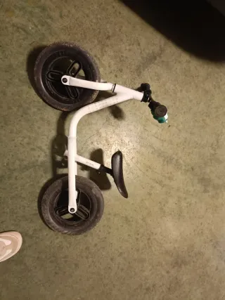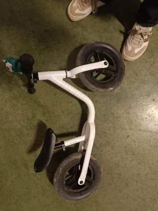 Bicicleta de aprendizaje sin pedales de Decathlon. Ideal para que los más pequeños aprendan a mantener el equilibrio. - Marco blanco. - Ruedas negras.
