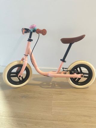 Bicicleta de equilibrio de la marca Btwin, ideal para los más pequeños. Tiene 1 año de antigüedad. - Sin pedales, para que aprendan a mantener el equilibrio. - Con freno. - Color rosa. - Diseño ligero. - Asiento ajustable.