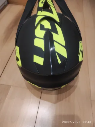 Casco integral para bicicleta de montaña con un diseño llamativo en negro y amarillo. Nunca se a usado porque lo compré pequeño. - Diseño deportivo. - Visera integrada.