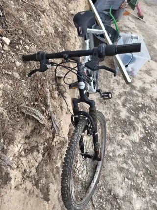 Bicicleta de montaña para reparar. Ideal para quien busca un proyecto y ahorrarse un dinerito en su bicicleta. La rueda trasera está desenganchada, se arregla fácil solo que yo no sé hacerlo y no quiero joderla - Cuadro de aluminio. - Suspensión delantera. - Ruedas de 26 pulgadas. Negociable