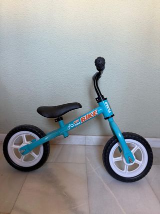 Bicicleta de aprendizaje sin pedales, ideal para los más pequeños. - Color azul. - Ruedas blancas. - Diseño ligero y resistente.