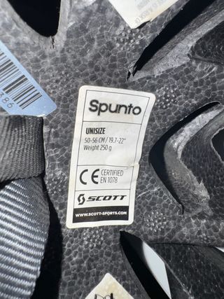 Casco de ciclismo Scott Spunto. - Talla UNISIZE: 50-56 cm. - Peso: 250 g. - Certificado EN 1078.