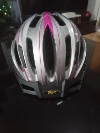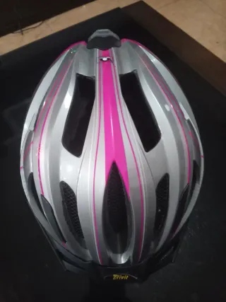 Casco de ciclismo Crivit con un diseño moderno y deportivo. - Color plateado con detalles en rosa. - Múltiples ventilaciones para mayor comodidad. - Ajuste regulable para un calce seguro.
