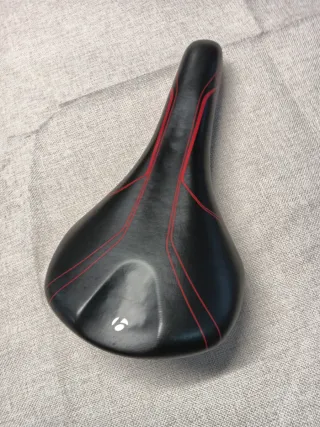 Sillín de bicicleta Bontrager en color negro con detalles en rojo. Diseñado para ofrecer comodidad y rendimiento. - Diseño ergonómico. - Detalles en rojo. - Marca Bontrager.