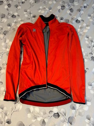 Chaqueta Sportful Fiandre Norain en color rojo/naranja, talla L. En perfecto estado y con muy poco uso. - Costuras termoselladas para la lluvia - Cremallera frontal completa. - Cuello alto. - Puños y cintura elásticos.