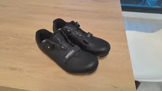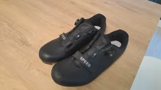 Zapatillas de ciclismo de carretera en color negro. - Talla 46. - Cierre con dial y velcro. - Cala incluida. - Diseño perforado para ventilación. - Suela rígida para máxima transferencia de potencia. - Marca: Speed