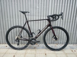 Bicicleta de carretera Orbea Orca M20iTEAM en color burdeos. - Cuadro de carbono. Tallas 57. 53. Pertenecen a equipo ciclista - Grupo Shimano Ultegra Di2. - Frenos de disco. - Ruedas Oquo 35 aluminio Opción de ir con ruedas de carbono con perfil 45