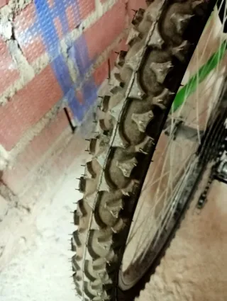 Bicicleta de montaña con un llamativo diseño en verde y negro. Ideal para paseos y rutas. - Cuadro de aluminio. - Ruedas de 26 pulgadas. - Frenos normales - Cambio Shimano. Hay que engrasar la ,ponerle unos puños en fin darle un repasito, tiene ruedas nuevas