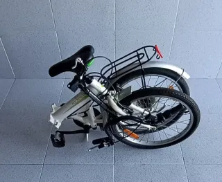 Bicicleta plegable de color blanco, ideal para transportarla y guardarla fácilmente. - Cuadro plegable. - Guardabarros.