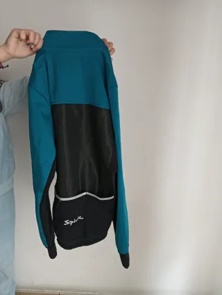 Chaqueta de ciclismo Spiuk en color azul turquesa y negro, ideal para invierno. Talla S. - Cierre completo con cremallera. - Cuello alto. - Puños y cintura elásticos.