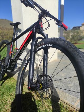 Cuadro de carbono,orquilla Fox,ruedas de 29 con tubules,frenos y piñonera Shimano, talla M. Está en muy buen estado, una bici perfecta para la montaña.Para más informacion hablame.