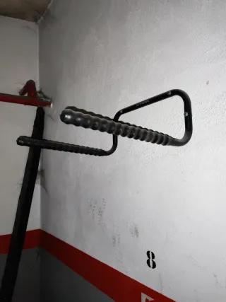 Soporte para colgar bicicletas en la pared. Ideal para optimizar el espacio en garajes o trasteros. - Fabricado en metal resistente. - Diseño en forma de U con protectores de goma en los extremos. - Incluye tornillos para su instalación.