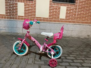 Bicicleta para niña, en muy buen estado. Ideal para niñas de entre 6 y 9 años. - Tiene una cesta delantera. - Es de color rosa y blanco. - Incluye ruedines.