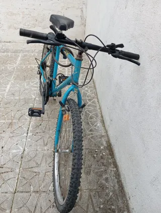 Bicicleta de montaña con ruedas de 24 pulgadas. - Cuadro de color naranja y azul. - Ruedas nuevas sin apenas rodar Los frenos van bien solo hay q ajustar el delantero La vendo porque se me quedo pequeña El precio por privado y cualquier duda no dude en preguntar