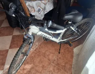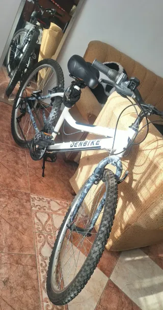 Bicicleta de montaña DENBIKE en color blanco. - Cuadro de aluminio. - Ruedas de 26 pulgadas. - Frenos de disco. - Cambios Saiguan Incluye 1 asiento aparte, luces señalizadoras recargables, cadena de seguridad con sus llaves, herramientas, y pegatinas de repuesto. vendo por no usar (NEGOCIABLE)