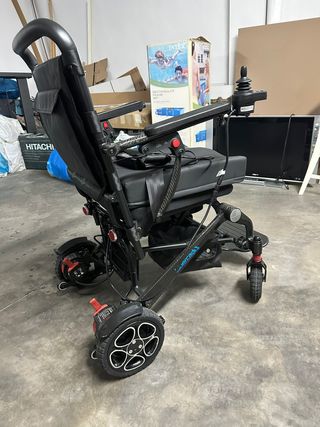 Silla de ruedas eléctrica plegable, fabricada en carbono para mayor ligereza y resistencia. Su diseño moderno y compacto la hace ideal para el día a día. Esta literalmente como nueva, no se pudo usar practicamente. -Capacidad 20Ah (hasta 26km autonomía) -Material principal Carbono. -Eléctrica y plegable. -Marca: Alma. -Autonomía máxima 13km / 26km -Velocidad máxima 8 km/h -Plegable -Número marchas 5 -Joystick con display digital -Peso batería litio unidad 1,8 kg / 2,2 kg -Amortiguación trasera -Respaldo transpirable -Peso máximo recomendado 135 kg -Velocidad marcha atrás 3 km/h Precio negociable