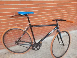Bicicleta Whistle modelo Mojave 1485 con ruedas de color naranja. -Fixie : piñón fijo o libre - Cuadro de color negro. - Sillín azul. - Manillar con puños naranjas. -Talla 49.50 cm -negociable