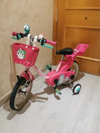 Bicicleta infantil rosa con unicornio